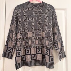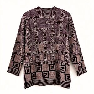 Authentic FENDI Zucca Unisex Brown FF Logo Wool Knitted Sweater W/ COA