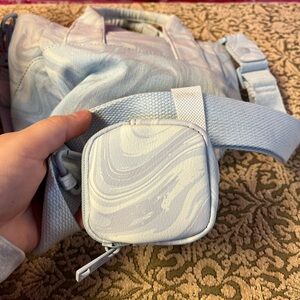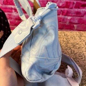 New with Tags Madden Girl Canvas Crossbody Tote/Purse. Blue Pastel Print small/mini size