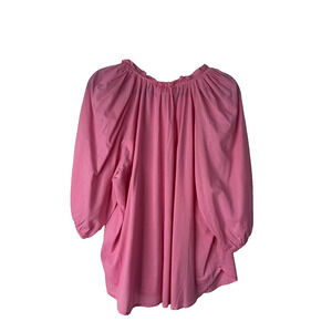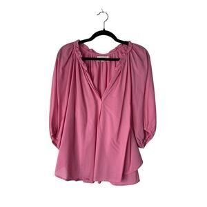 Xirena Jules Cotton Poplin Top Size Large Pink Short Puff Sleeve Ruffle Blouse