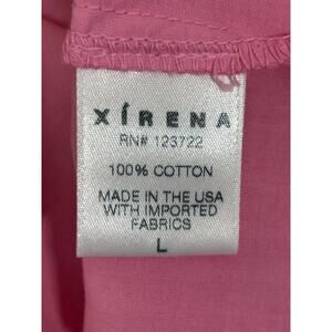 The Xirena Jules Cotton Poplin Top is a stylish blouse in size Large, featuring short puff sleeves and a ruffle accent for a trendy look. Made of 100% poplin cotton, this pink top is perfect for casual occasions with a relaxed fit and V-neckline. Designed in the United States, this lightweight and breathable blouse is ideal for the summer, fall, and spring seasons, making it a versatile addition to any woman's wardrobe. The classic yet colorful style of Xirena clothing makes this top a standout choice for those looking for a designer touch.