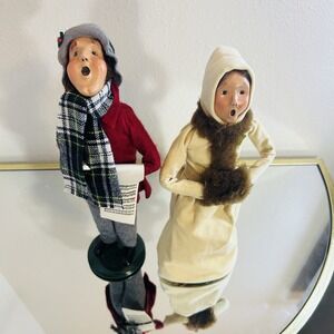 See picture for details such as wear and tear. The Byers Choice Rare 1980 Traditional Woman with Muff is a collectible holiday ornament handmade in the 1980s. This multicolor figurine features a unique bumpy base and is accompanied by a Carolers Boy. Made from mixed materials, this vintage piece is a special addition to any Christmas decor collection, showcasing the craftsmanship and charm that Byers' Choice is known for.