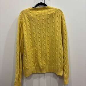 Stylish yellow cable knit sweater by Polo Ralph Lauren. Features a classic design with a subtle logo detail.