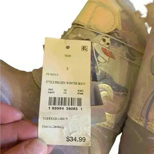 Disney Frozen Winter Light up boots Toddler girl size 5 NWT without box. Has Velcro straps for closure & Anna Elsa & Olaf are pictured on them. In a purple color with a fur lining inside. Perfect for a little girl that is a Disney or Frozen fan. SFPF HOME