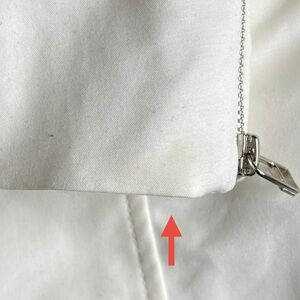 Preowned condition, gently worn, stain on the left cuff and on the back shoulder seam, no other flaws.