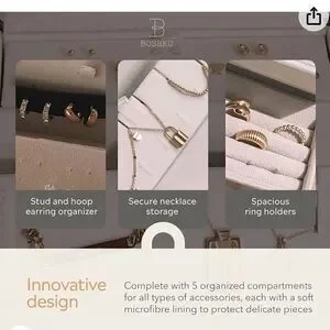 folds out into 5 SEGMENTS, each with a SOFT MICROFIBER lining to protect delicate pieces. Every segment features a HIDDEN COMPARTMENT to keep valuable pieces out of sight and shielded from the elements.