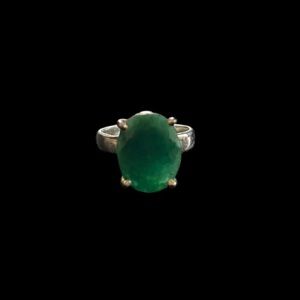 Large oval emerald statement ring set in sterling silver size 7-1/2.