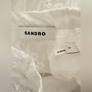 Sandro Shena Floral-Embroidered Crop Blouse in White Size 8