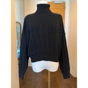 Brandy Melville Black Ribbed Turtleneck Cropped Sweater OS