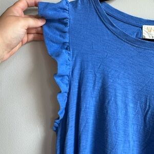 Nation LTD Elliot Fused Ruffle Dress Blue Pima Cotton Midi Boho Luxe M Coquette