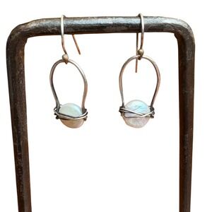 Handcrafted Wire Wrapped Pearl Drop Earrings Artisan Silver Tone Jewelry