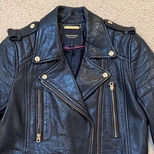 Juicy Couture Black Leather Moto Jacket 100% Lamb Leather size M