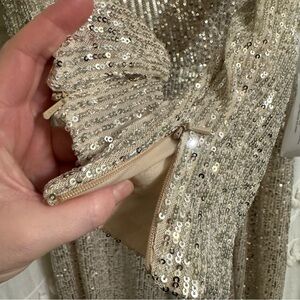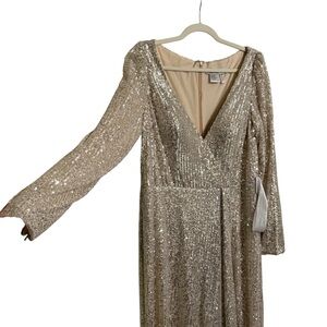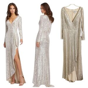 IEENA Mac Duggal Dress Womens Size 14 Long Sleeve Sequin Wrap V Neck Gown. New without tags. Still has white fabric return tag attached.