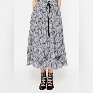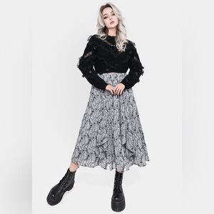 Disturbia Rosethorn Flocked Velour Chiffon Ruffle Midi Skirt - Blue US 4 / UK 8