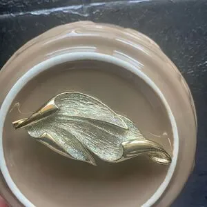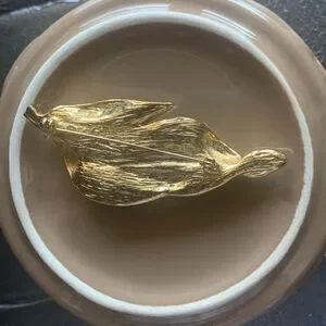 Vintage Curvaceous 3-leaf Gold and teal shimmer Brooch, in Gold tone