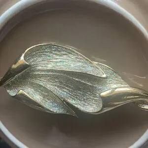 Vintage Curvaceous 3-leaf Gold and teal shimmer Brooch, in Gold tone, Unmarked