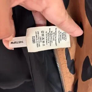 A classic bomber gets a modern update in silk charmeuse designed in an abstract spotted animal print in camel and black. The fully lined jacket features a front zipper, welt pockets and ribbed detailing all along the collar, hem and cuffs.