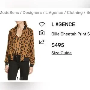 New! L’AGENCE Ollie Cheetah Silk Bomber Jacket Leopard Camel/Black Size Large