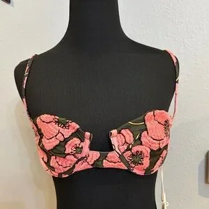 AGUA BY AGUA BENDITA Soya Botanica Rosa Embroidered Bikini Top NWT