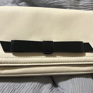 Kate Spade New York Cream Leather & Black Bow Tie Clutch