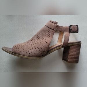 Franco Sarto Harlet 2 Suede Perforated Block Peep Toe Sandals Wms 8M