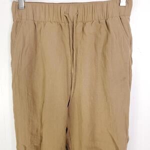 HM Pants WOmens Small Straight Leg Tan Neutral Capsule Pull ON Drawstring Waist