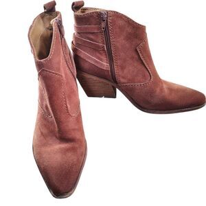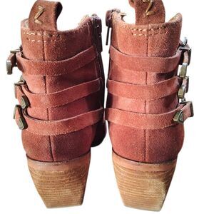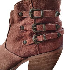 Zodiac Dacey Chestnut Suede Ankle Boots Women’s 7.5 Western Buckle Strap Side Zi