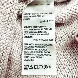 • Soft cotton-nylon blend (55% cotton, 45% nylon, machine washable)
