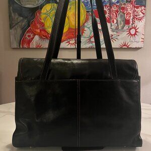 Snap closure. Exterior pocket. Spacious interior with separate compartments.