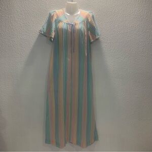 Lindsay Jordan Multicolor Pastel Striped Zipper front Nightgown