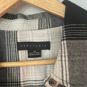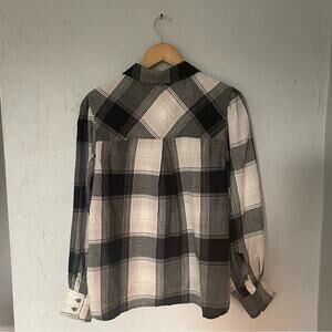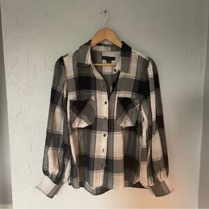 Sanctuary Anthropologie Black and White Plaid Balloon Sleeve Button Down Shirt