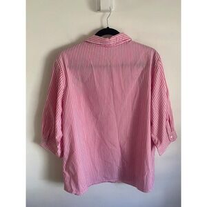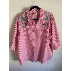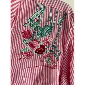 Dark Pink Striped Button Up Shirt with Embroidered Flowers Size XL