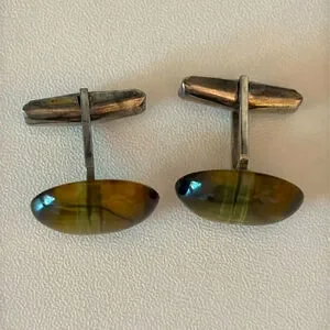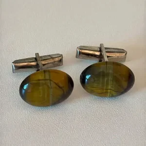 Vintage Tiger’s Eye cufflinks silver Tone with Brown & golden Accents men’s French cuffs