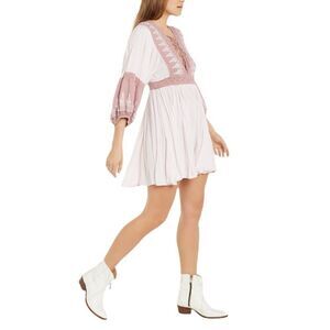 Free People Turn Heads Embroidered Lace-Trim Mini Dress in the Size Large