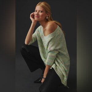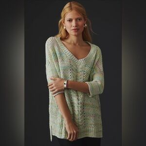 Anthropologie PILCRO oversized slouchy cable-knit tunic style pullover sweater top short sleeves