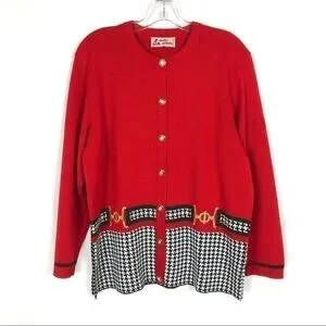 Got this while i was in Italy! Never worn. Sat in closet for forever. My loss your gain! Giulio Saletta red houndstooth cardigan. Gold buttons. Gold embroidered detail