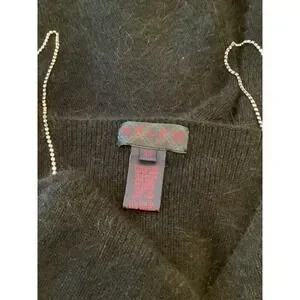 RALPH LAUREN RARE VINTAGE BLUE LABEL BLACK ANGORA DRESS /RHINESTONE STRAPS XS