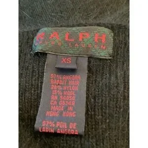 RALPH LAUREN Rare Vintage Blue Label black angora slip style cocktail dress. Size XS. In excellent condition. A gorgeous understated black Angora Rabbit Hair dress. Deep V-Neck front neckline. Thin delicate rhinestone straps. Very soft, curve hugging. A RARE HIGH END FIND! There is one stone missing at the top of the left shoulder, it is not noticeable. Please see last picture.