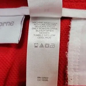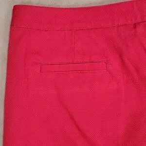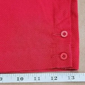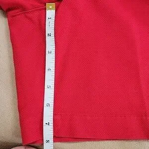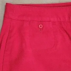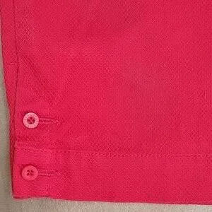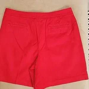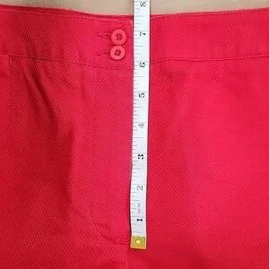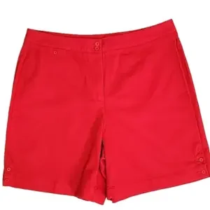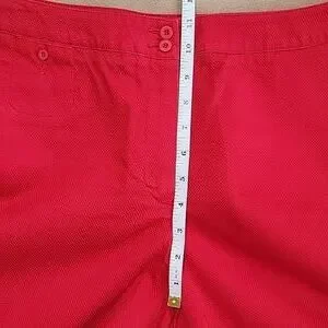 Liz Claiborne Liz Sport red bermuda shorts. Double button closure at waist. Button detail at leg hem. Stretch cotton spandex red pique fabric. 5 pockets, 2 pockets(front button penny pocket) Waist measures flat 17". 11" rise. 7.5" zipper rise. 7" inseam. 18" outer length. 13" leg opening at hem. Size 14 EUC