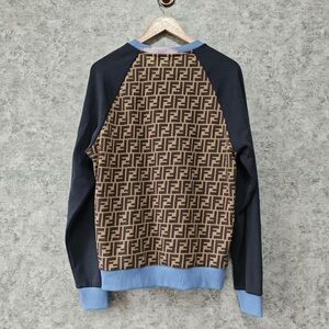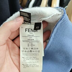 Stylish Fendi crewneck sweater with iconic logo pattern. Features blue accents and bold design. FENDI all-over print sweatshirt, Made in Italy, 100% cotton, blue and black color blocking, large logo design on the chest, 🧡size xs Length 62cm, Chest 50cm, Shoulder width 45cm. 🧡Condition 9.8/10, flawless. 🧡unisex 🧡retail price 1900