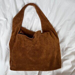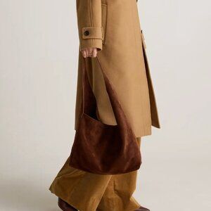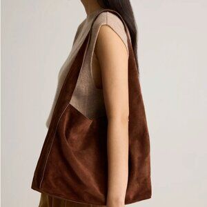 NWT Quince Italian Leather Suede Slouchy Shoulder Bag in Chocolate Brown