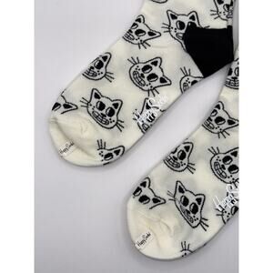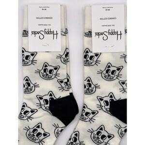 2 Pairs Happy Socks White Cat Half Calf Size Medium Unisex