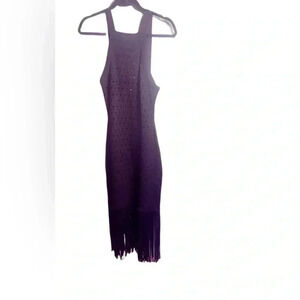 Sandro black wedding prom fringe flapper knitted crochet strappy dress 38