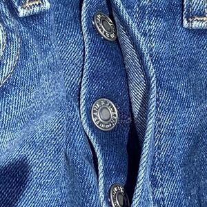 The Frank & Eileen Size 27 in Antique Blue Medium Wash Cork Straight Leg Denim Jeans are a stylish and versatile addition to any woman's wardrobe. Made from a comfortable blend of cotton, elastane, and lycra, these high-rise jeans feature a classic button closure and a regular fit. With a solid blue color and a medium wash, these jeans are perfect for a casual yet chic look. The raw hem and 5-pocket design add a touch of flair, making them suitable for various occasions from bohemian to city or preppy. Perfect for a woman looking for both style and comfort in her everyday wear.
