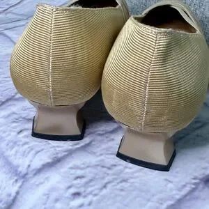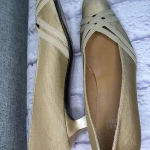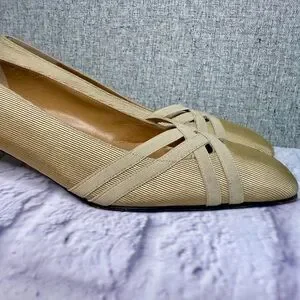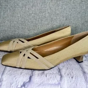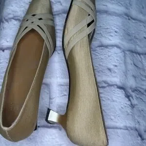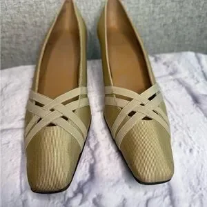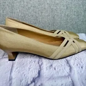 Vintage Stuart Weitzman Gold Cream Pumps Kitten Heel Made in Italy 7.5 Narrow