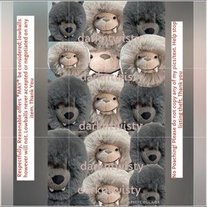 BNWT No formal visible defects that I can see. Mfg states H 13” W 6” for Bo Bigfoot and 11” x 7.1” x 4.7” for Wilf Wolf.