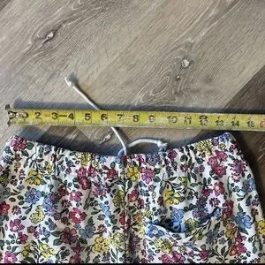 The VTG Teddy Fresh Women's Floral/White Grandma Jogger Sweatpants in size small feature a retro look with a patch logo, making them perfect for a casual occasion. Made of cotton, these sweatpants have an approximately 25" inseam and 14" waist size, adding a touch of nostalgia to your everyday wardrobe. The multi-color floral design adds a playful and feminine touch to these comfortable and stylish pants.