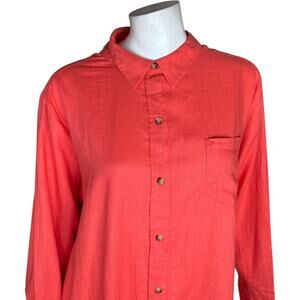 Encore by Idina Menzel Coral Linen Blend Tunic Shirt Dress LP NWOT Button-Front