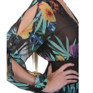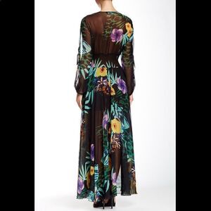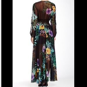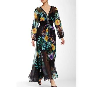 TOV Lace-Up Flora Print Chiffon Maxi Dress NWT