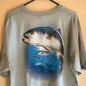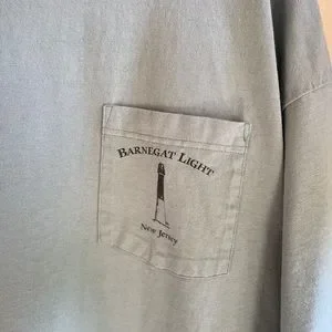 Vintage Barnegat Light New Jersey Blue Fish Tshirt. Heavyweight 100's Cotton Tshirt by Anvil. Large Blue Fish Graphic on back. Barnegat Light House on front pocket. Mint Green. A great gift fir the Fisherman. 🐟🎣🦈