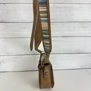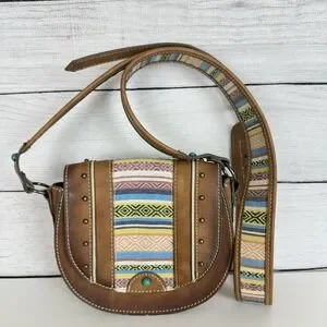 Tony Lama Woven Accent Colorful SaddleBag Leather Southwestern Crossbody Purse
